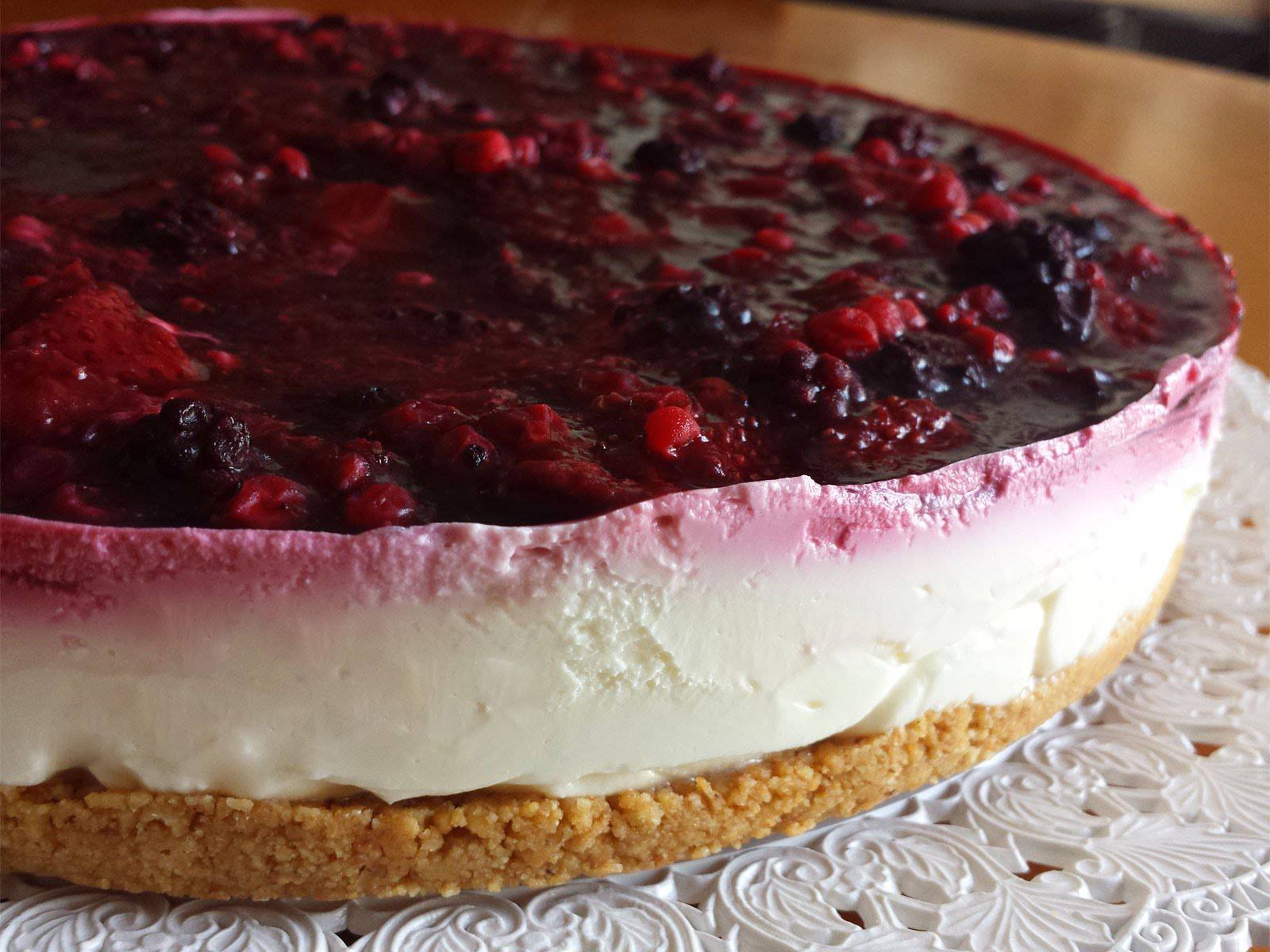 Ricetta Cheesecake Ai Frutti Di Bosco. Bellissima e buonissima, come solo una cheesecake ai frutti di bosco può essere, questa torta in versione senza cottura. Cheesecake ai frutti bosco senza cottura.